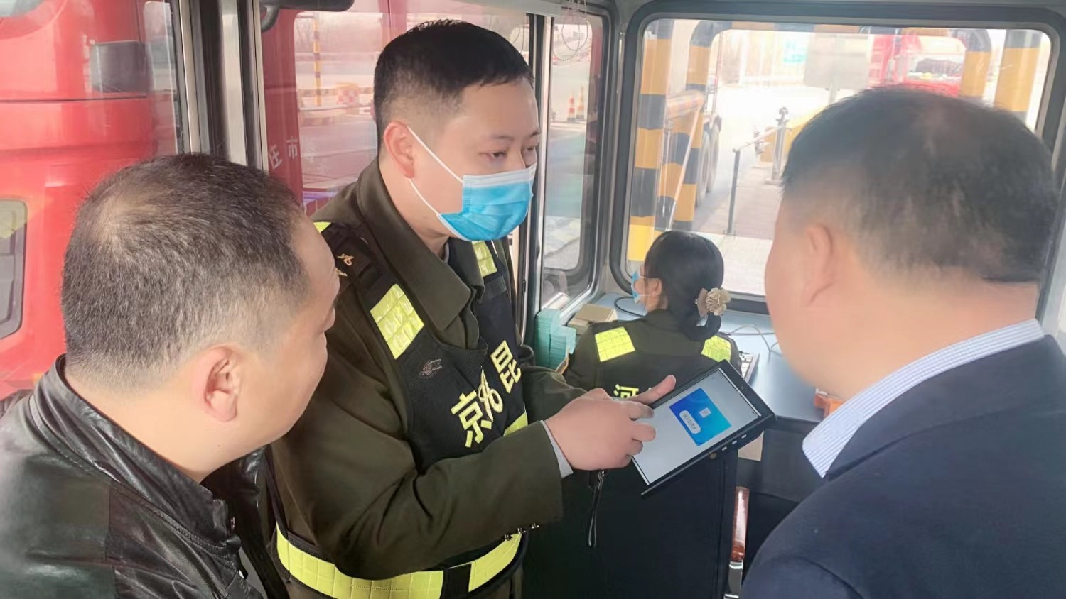 隨后,調(diào)研組又先后前往石家莊繞城高速石家莊收費站和京石高速保定收費站,實地調(diào)研便攜式手持機、自助收費機器人和智慧發(fā)卡機器人實際使用情況,現(xiàn)場對智能設(shè)備工作流程和工作效率進行統(tǒng)計分析,并與收費站工作人員和司乘進行細致詢問和溝通。